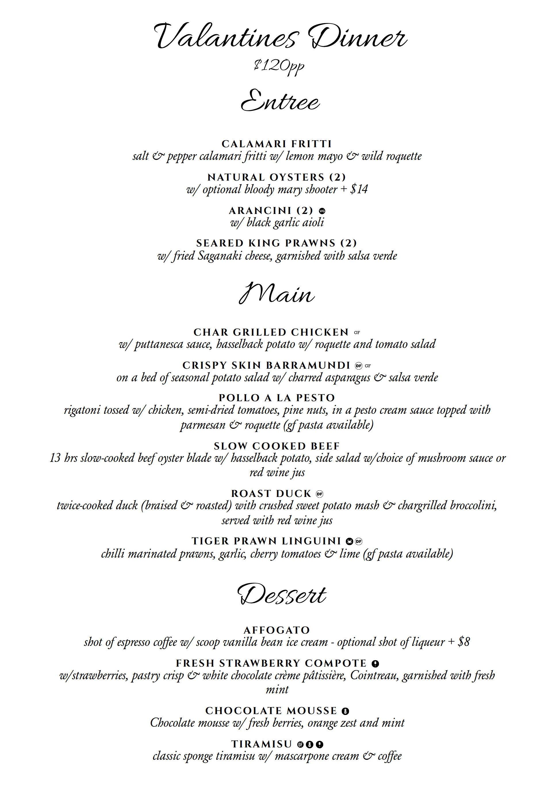 ❋ February 14th | $120pp Valentine's Day Dinner BOOK A TABLE This is an adults-only night; no other menu will be available, and tables are limited.